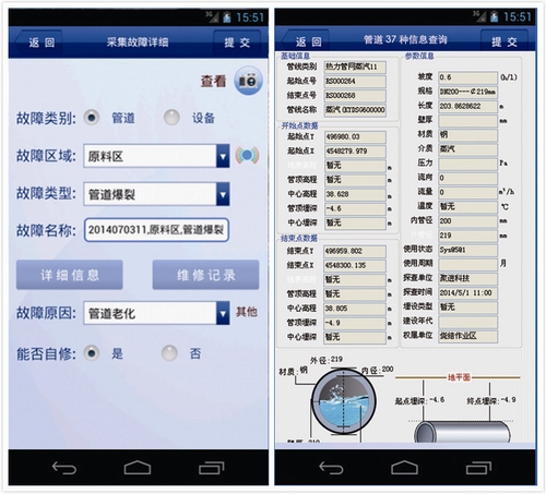■ 手持端PDA功能主要是對管道的日常維修進行管控,為管道的排查上報故障等工作提供方便。